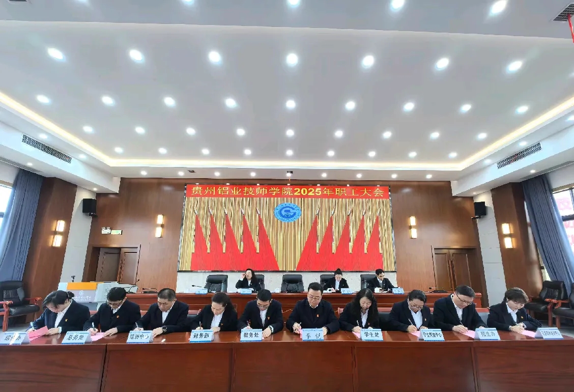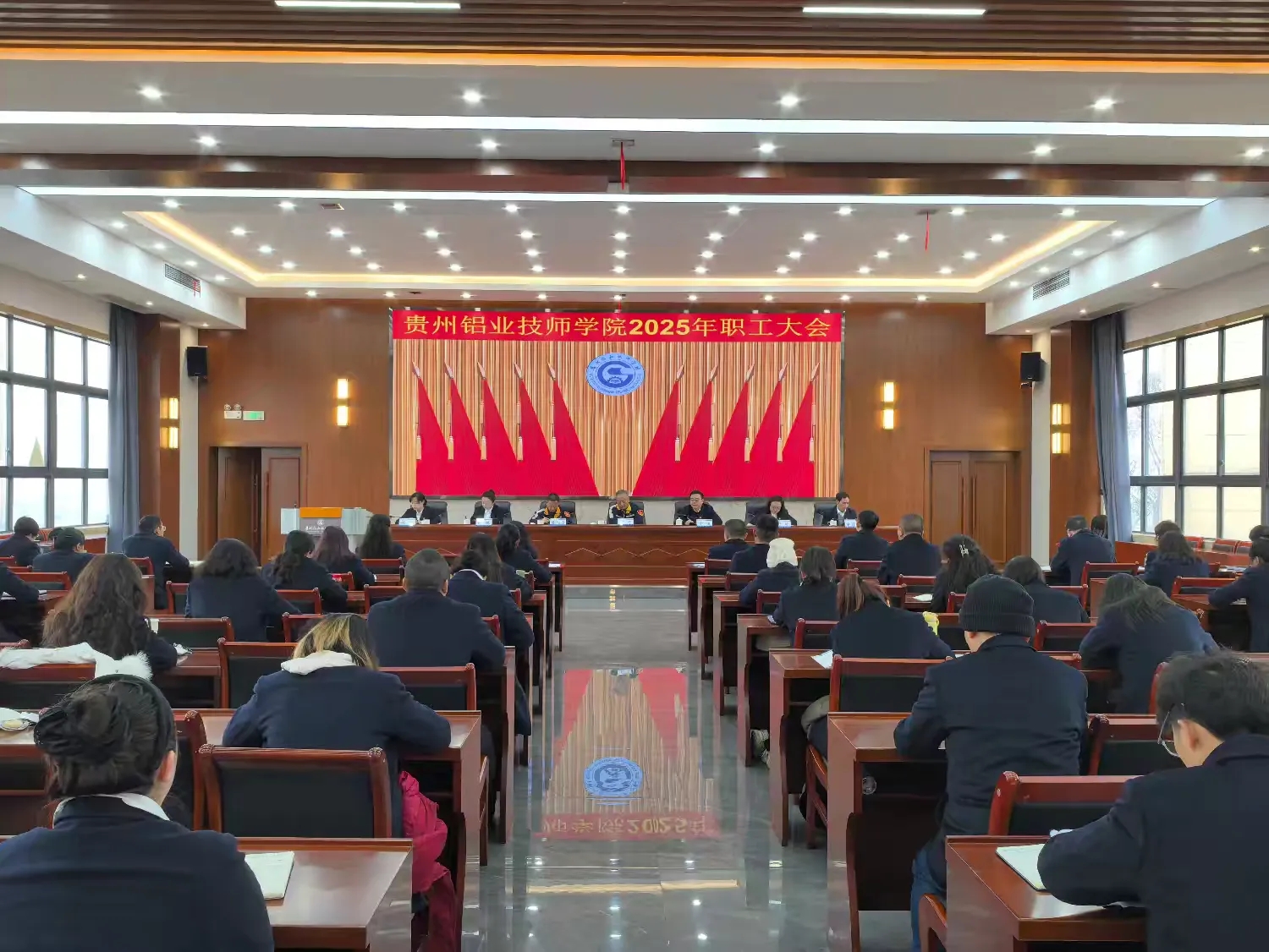 会上,彭涛首先代表公司党委、行政对学院近年来取得的成绩给予充分肯定,对全体职教员工团结奋斗、辛勤付出推动学院发展表示亲切慰问,同时对学院2025年职工大会的胜利召开表示祝贺。他对学院2025年的工作提出希望和要求:一是要持续加强党建引领,筑牢学院发展的“根”和“魂”;二是要持续巩固基础管理,提升学院办学品质;三是要持续提升品牌影响,将学院打造成中铝旗下品牌院校;四是要持续提升风险管控,推动学院发展行稳致远;五是要精细化谋划好“十五五”规划,推动学院高质量发展。他希望学院上下要凝心聚力、团结一心,努力将学院建设成为贵州省“一流技师学院”不断奋斗。
