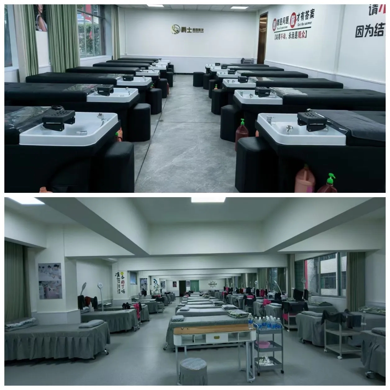 走进学院东校区一体化实训基地,映入眼帘的是现代化的美容美发设备,这些设备均由上海爵士美容美发有限公司提供,与行业主流设备同步,让学生在入校学习之初就能接触到最前沿的技术。同时企业与学院共同研究确定人才培养方案,共同制定教学计划,课程内容紧贴市场趋势,涵盖美容护肤、发型设计、形象造型、门店管理等实用技能,确保学生学有所用,更好地达到企业参与进课程设计的目的。